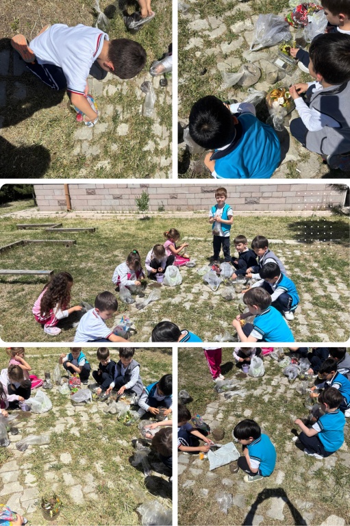 Enerji Dostu Mavi Yeşil Okul Projesi kapsamında yürütülen çalışmalar doğrultusunda, okulumuz anasınıfı öğrencilerimiz öğretmenleri rehberliğinde evden getirdikleri meyve-yumurta kabukları, çay posası gibi atıkları kullanarak kompost(doğal gübre) yaptılar.